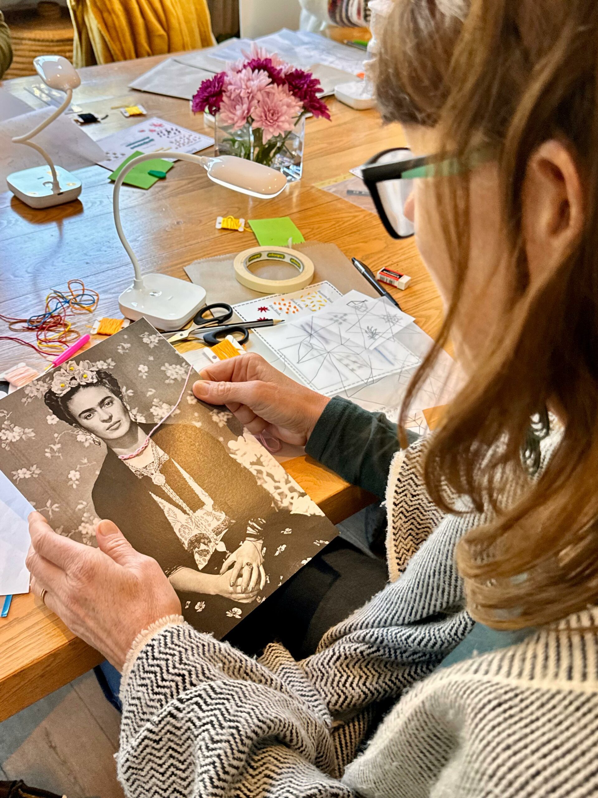 - All threads, needles, tape, tracing paper, inspiration papers, scissors (for use during the workshop only)